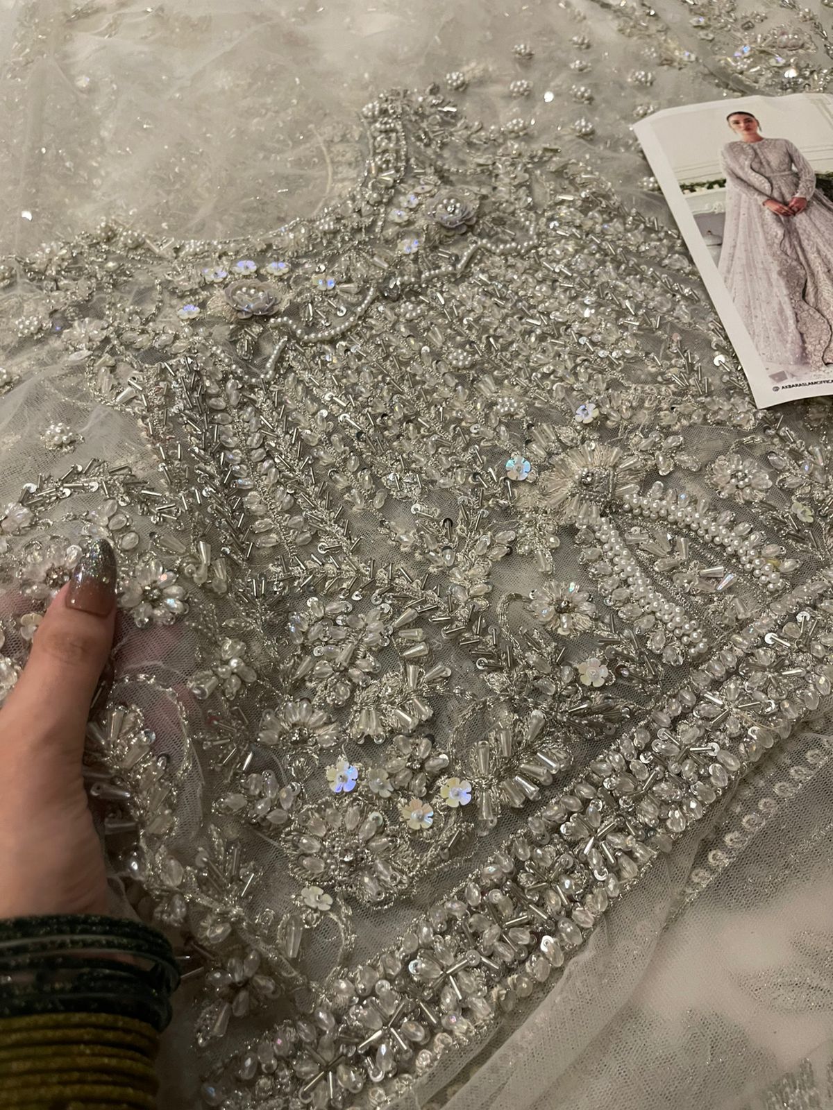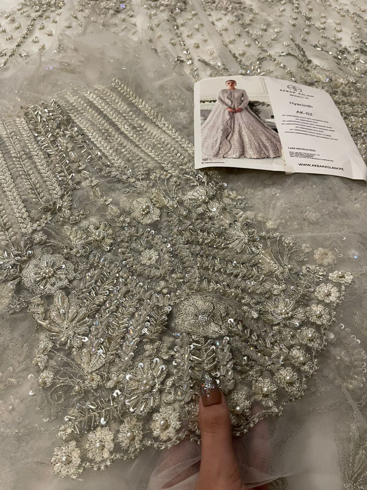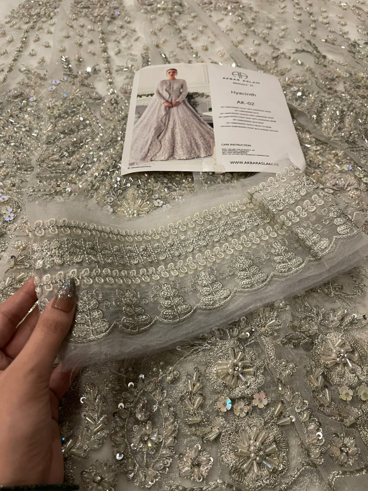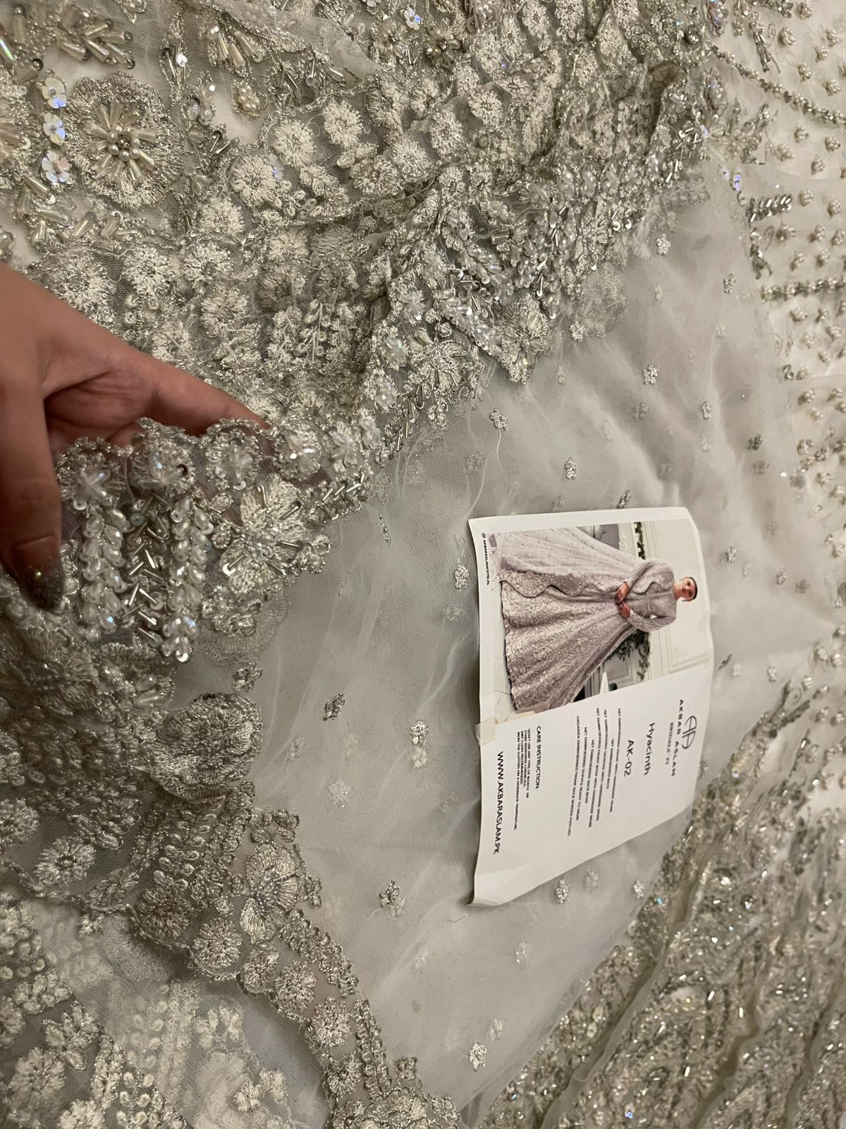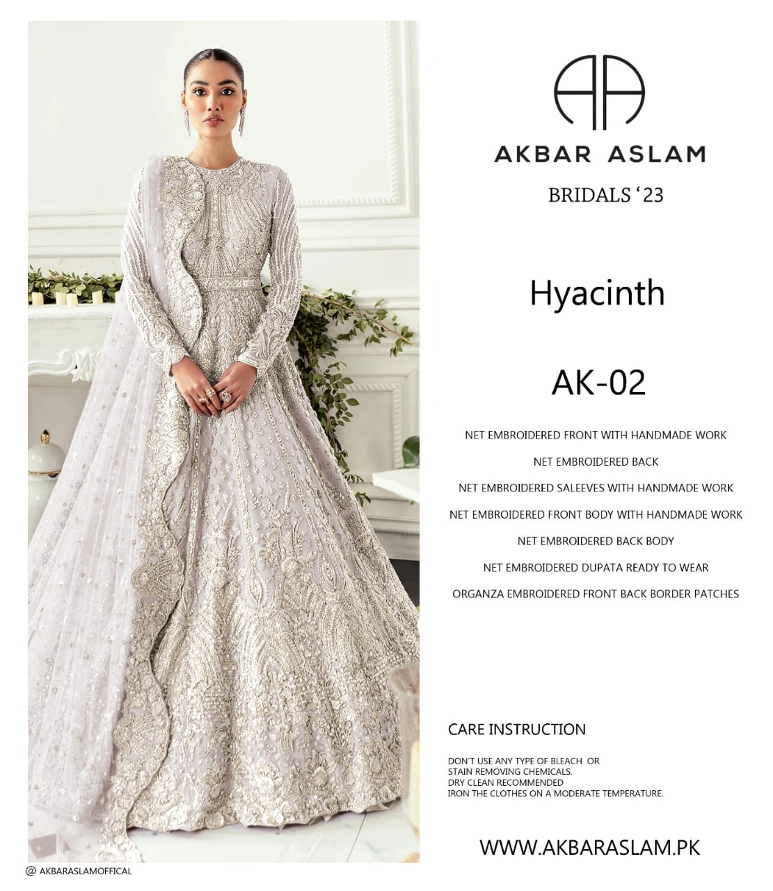 Step into regal charm with Akbar Aslam Exclusive Luxury Wedding Festive Maxi Hyacinth luxury formal wear.