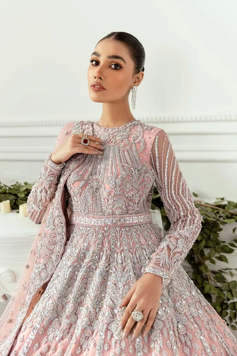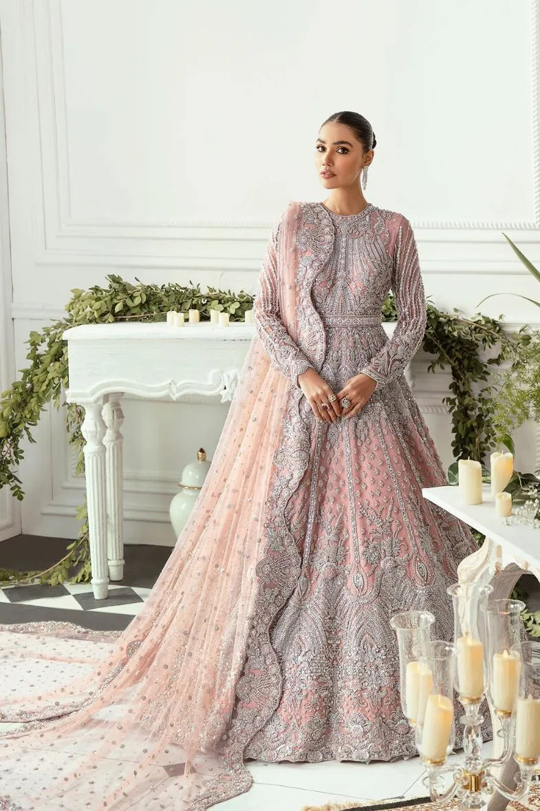 Step into regal charm with Akbar Aslam Exclusive Luxury Wedding Festive Maxi Hyacinth luxury formal wear.