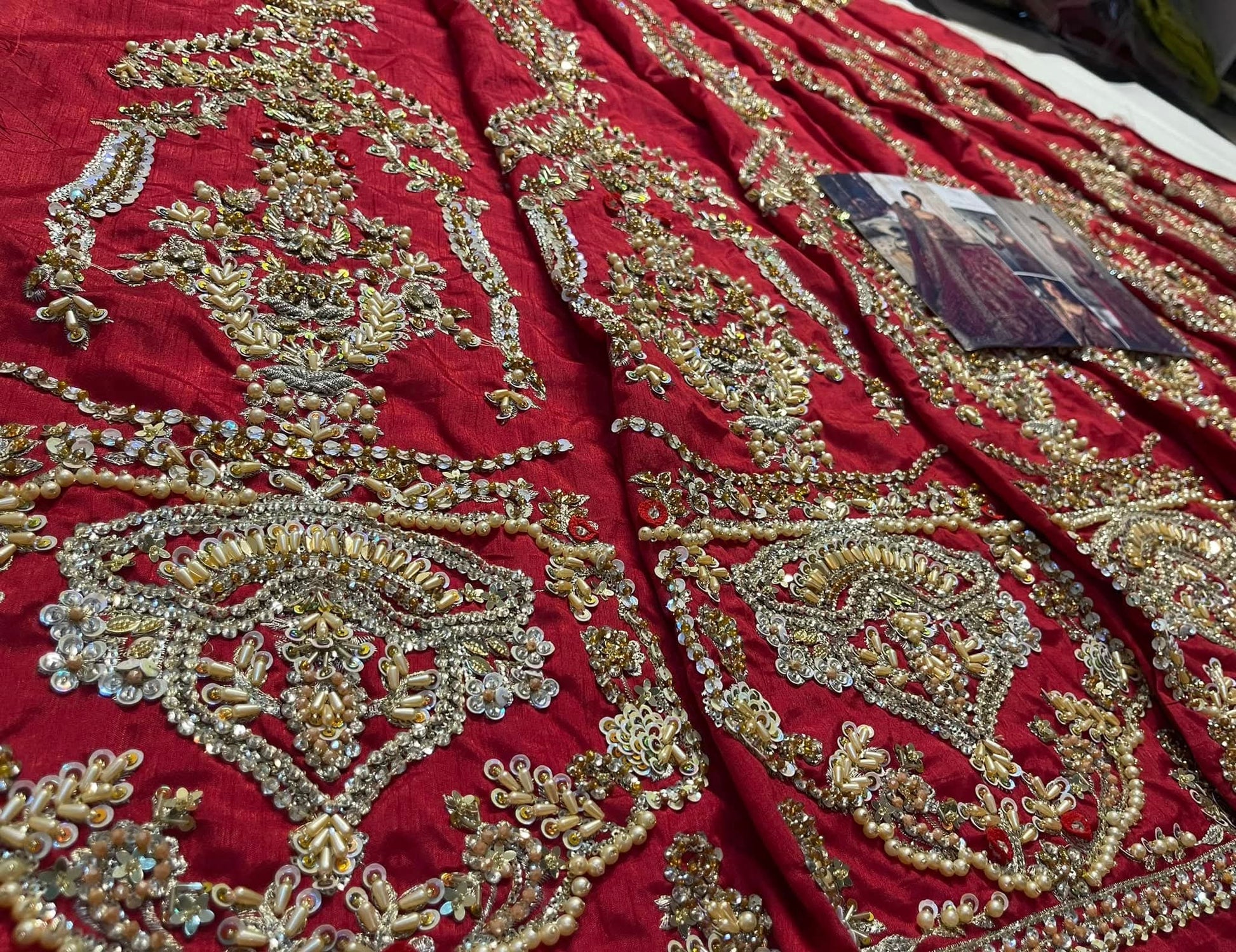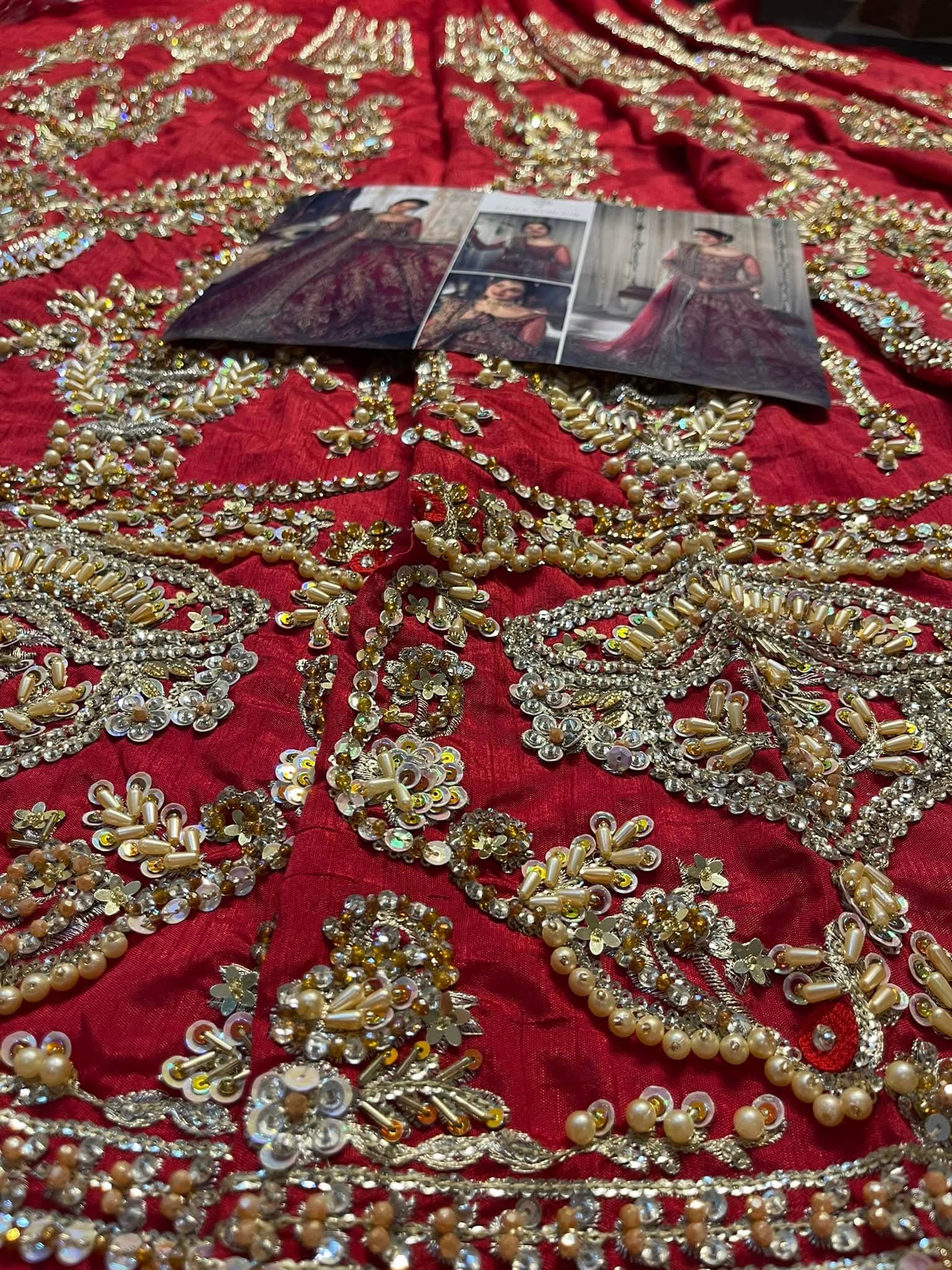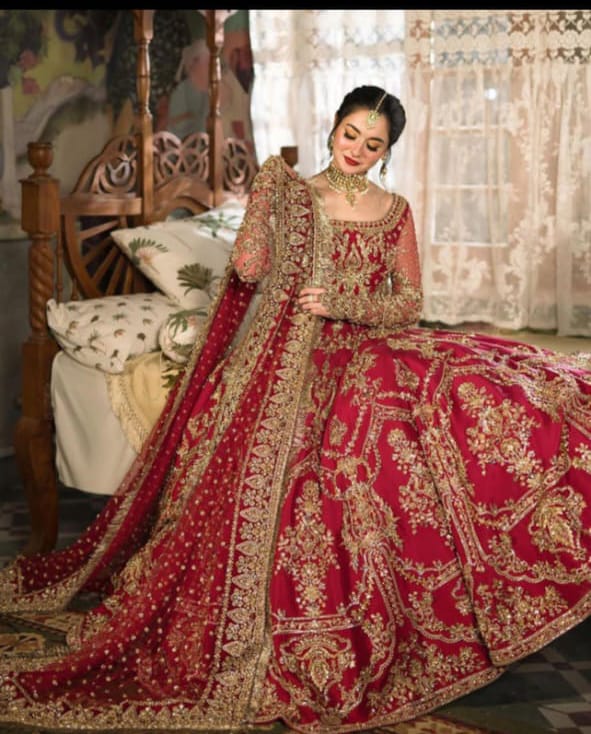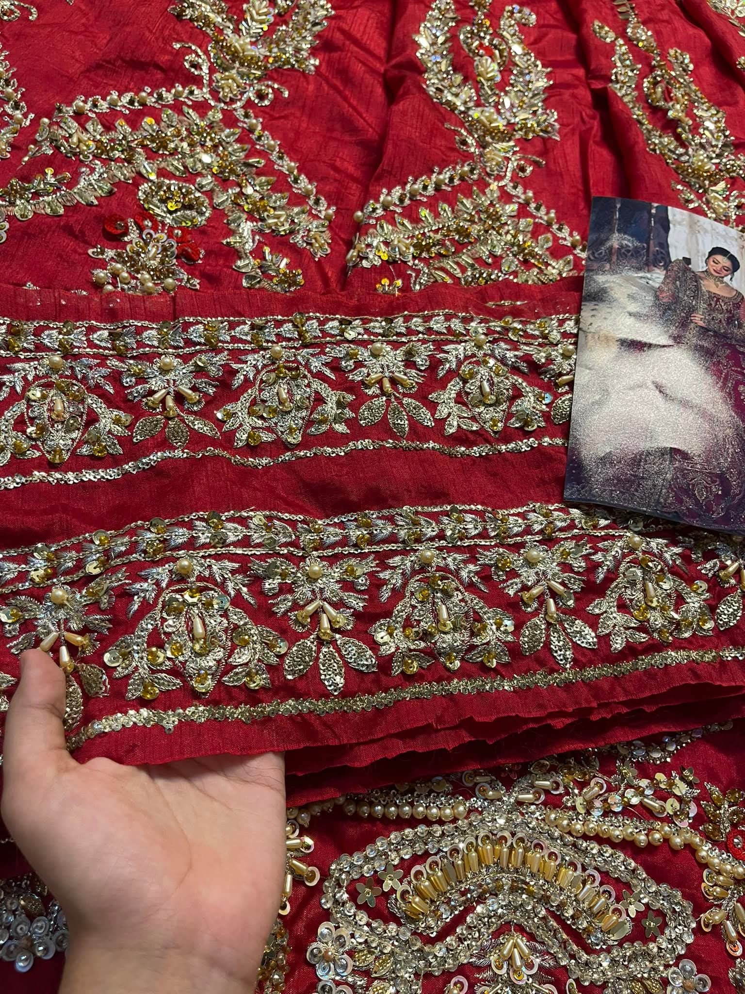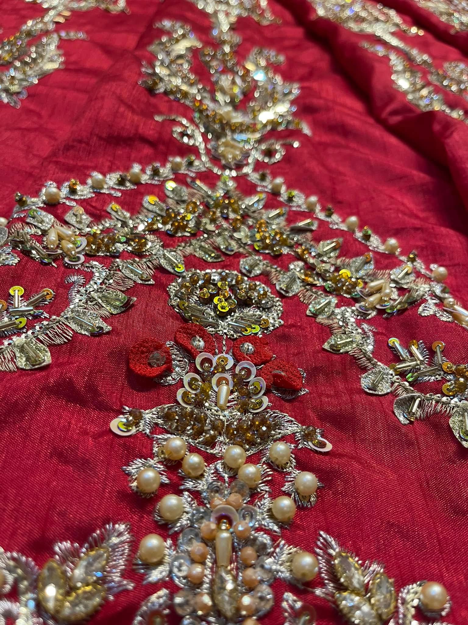 Description: Crafted on a luxurious red Maronish canvas of fine spun raw silk, Arusa manifests timeless luxury. The lustrous lehnga set is adorned with floral bouquets set within delicately ornate arches gleaned from iconic Mughal inlay art. Patterns of brimming floral vases are wrought by master craftsmen using hand techniques like zardosi, kora and dabka. Paired with a delicately hand crafted dupatta, Arusa is symphony of grace and opulence.