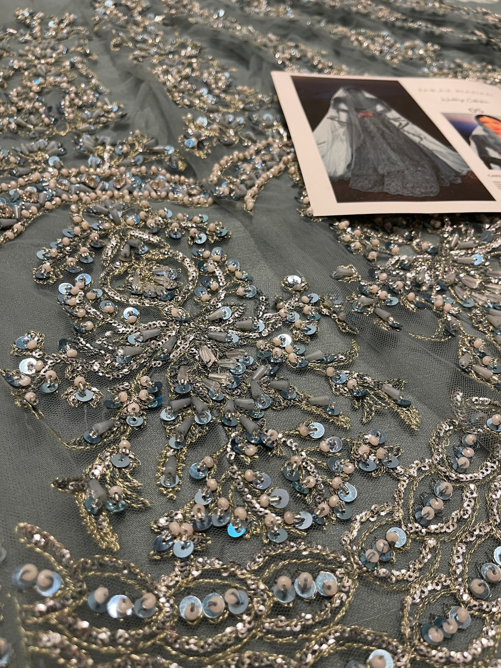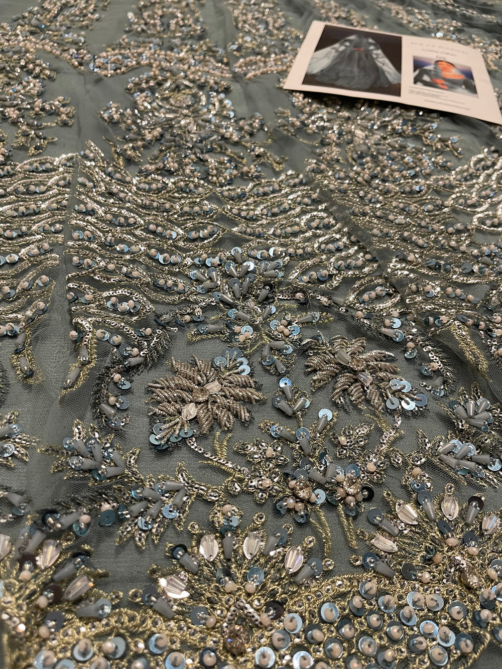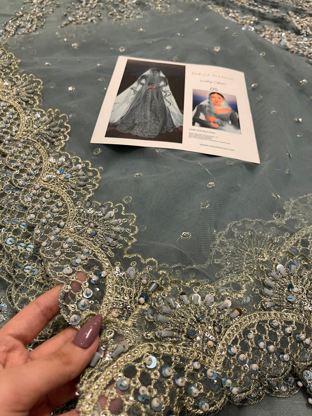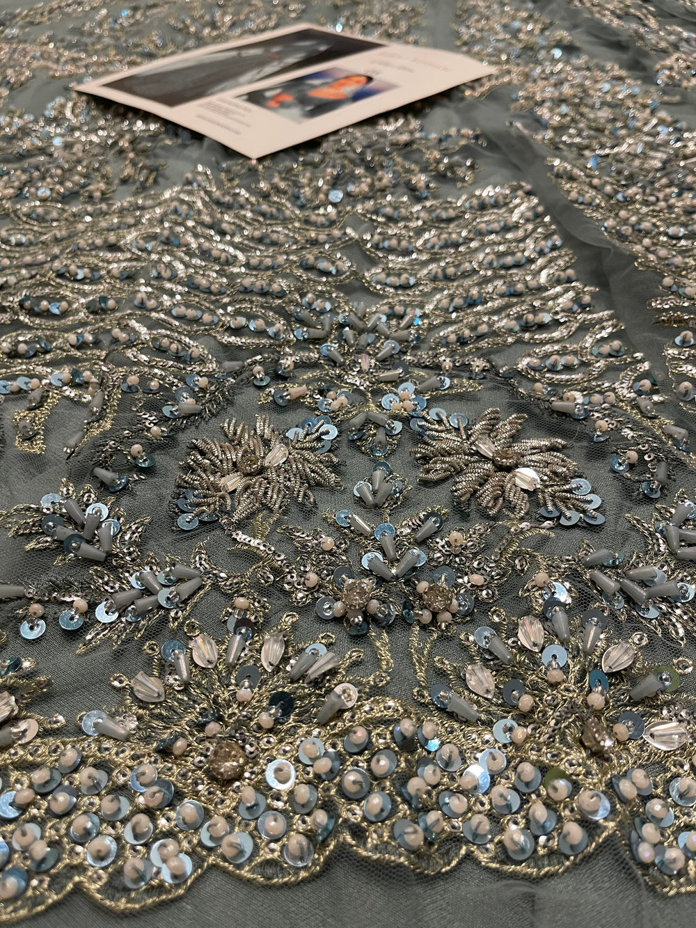 Custom Couture Ensemble | Inspired by Faraz Manan A masterfully handcrafted ensemble inspired by the timeless elegance of Faraz Manan’s design philosophy. This bespoke piece is brought to life in a uniquely curated shade, featuring an intricate tapestry of floral and vine motifs. Every inch is adorned with delicate hand embroidery — shimmering sequins, pearls, crystal beads, and metallic threadwork — woven together to create a luxurious, ethereal finish. A true celebration of craftsmanship and couture, this outfit blends traditional artistry with modern refinement, designed for those who appreciate detail, elegance, and individuality