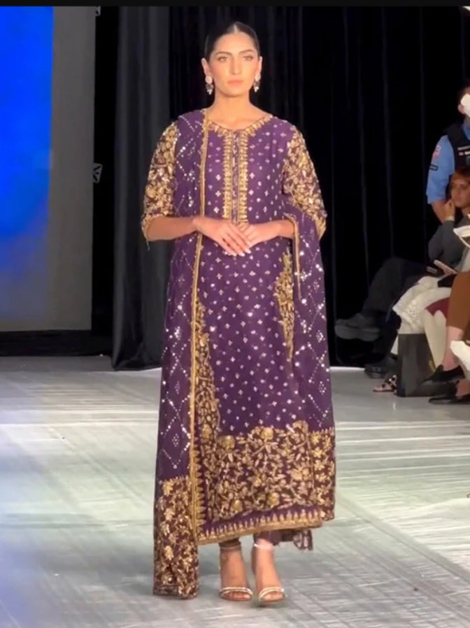 3 piece outfit Haris Shakeel Brides – Purple” features intricate embroidery and luxurious embellishments meticulously crafted on...