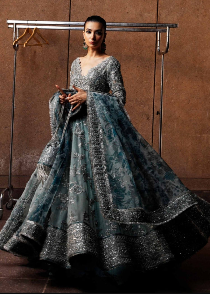 Beautiful Ada Work Hand Embellished 7 Pannel On Soft Organza Fabric For Front Saperate Embellished Body On Soft Organza Embellished Tilla thread Sequence Embroidered 7 Back Pannel on Organza Saperate Embellished Sleeves On Organza Ready To Wear Heavily Embroidered Stitched Dupata, 2.5yards Of Slub Raw Silk Solid Dyed Trouser With This Beautiful Maxi A worth Buying Product Highly Recommended For traditional Pakistani Waleema Or Barat Function, Tap Forward on The First Image to Watch The Detail Video And Open Images of The Product.