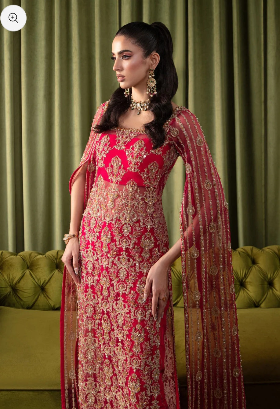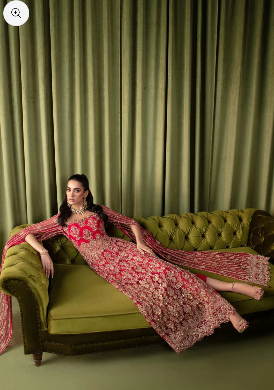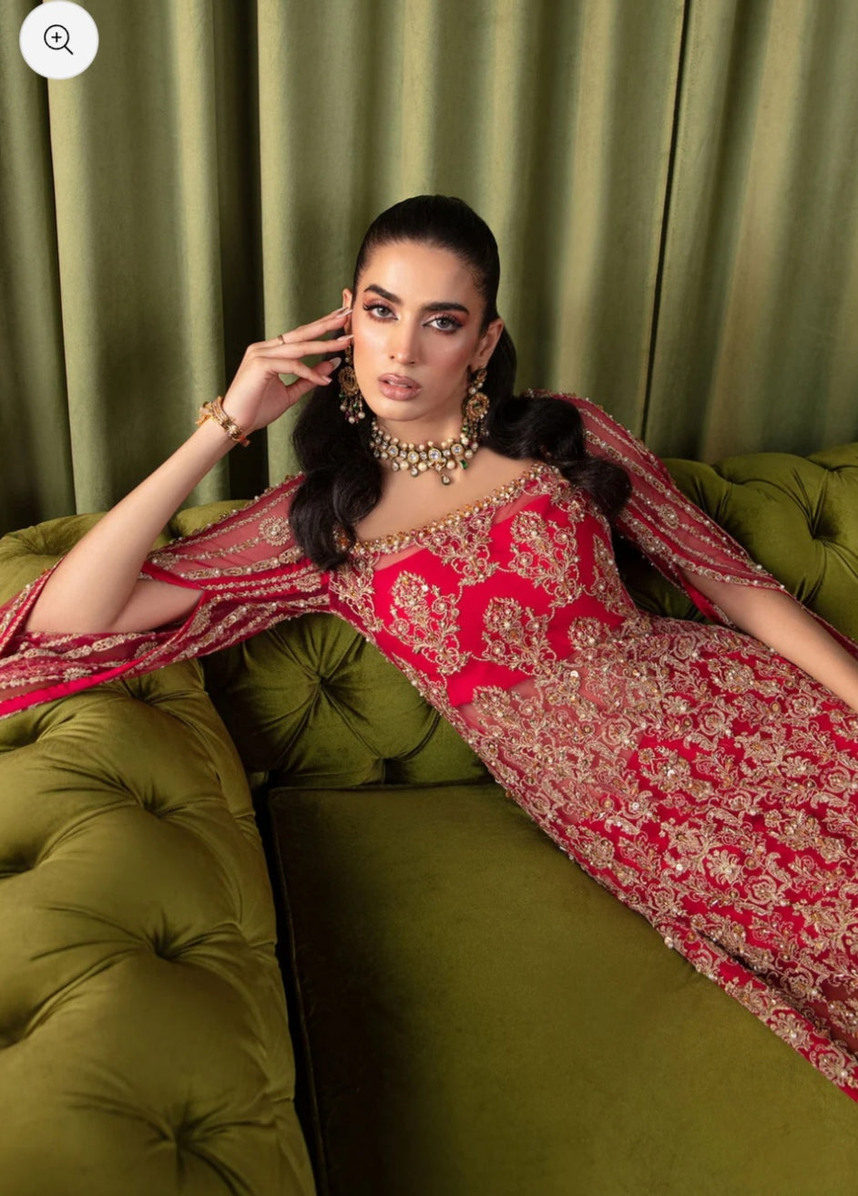 Embark on a journey to an enchanted realm with this ethereal ensemble, a fusion of fairy-like perfection and timeless elegance. Imagine a mesmerizing shocking pink long shirt adorned with intricate silvery lined motifs and a delicately scalloped hem, each detail crafted to captivate and charm. Picture cascading sequins, lustrous pearls, and glistening crystals adorning the fabric, creating a mesmerizing display of light and movement with every step you take. Completing this captivating look are cigarette pants in a complementary cherry hue, boasting side seam details that add a touch of sophistication and cohesion to the ensemble. Step into the spotlight and let your inner fairy shine with this exquisite ensemble, a testament to the boundless beauty of imagination and the enduring power of elegance.