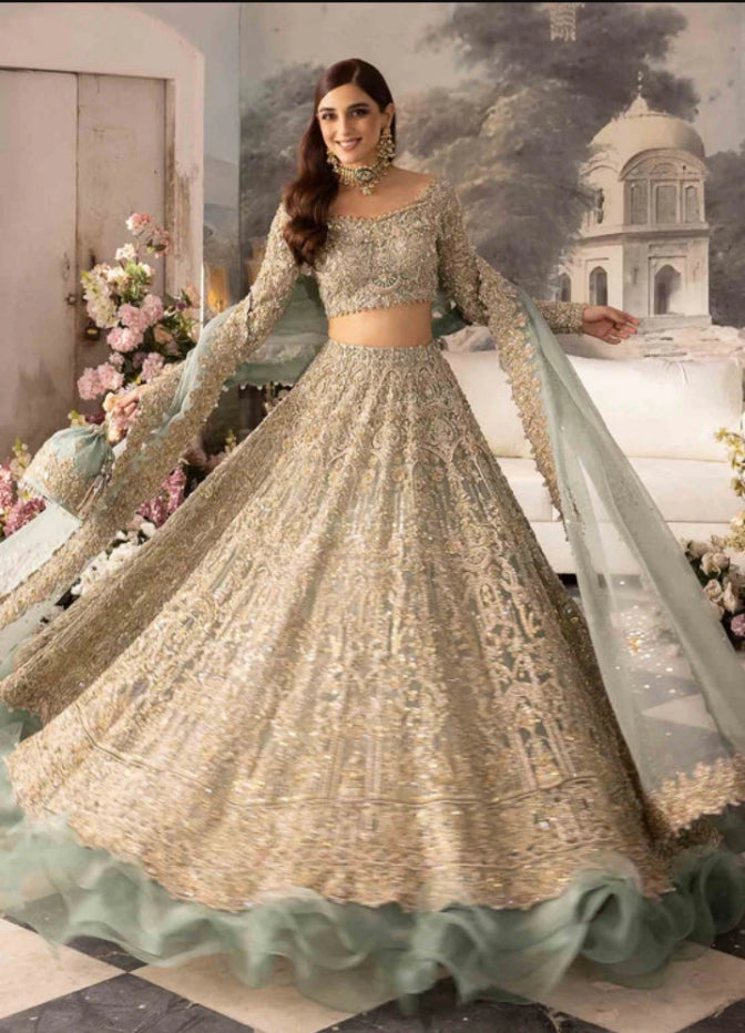 on her special day. Paired with a matching Choli, the ensemble is a celebration of