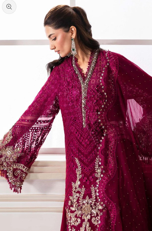 Maria.B Mbroidered BD-3003 is a vibrant celebration of tradition and elegance. Richly adorned with intricate embroidery and thoughtfully placed embellishments, the design captures attention with its bold yet graceful appeal. The striking color palette adds a festive flair, making it an ideal choice for special occasions where style meets cultural charm in the most refined way.