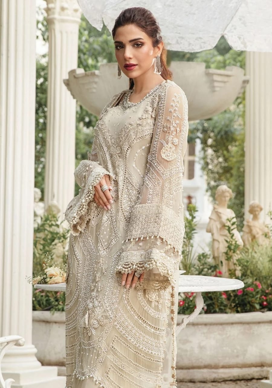 Embroidered Sleeves With Machine Katdana & 3D Flower Embellishment