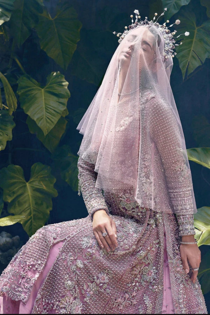 Zarim, an ethereal ensemble is a celebration of tradition and contemporary fashion, perfect for the modern bride who appreciates timeless beauty. The ensemble is adorned with delicate sequins and naqshi work that shimmers with every movement, thus creating a mesmerizing effect. The stone work, intricately placed, adds a touch of opulence and glamour, reflecting light in the most captivating way.