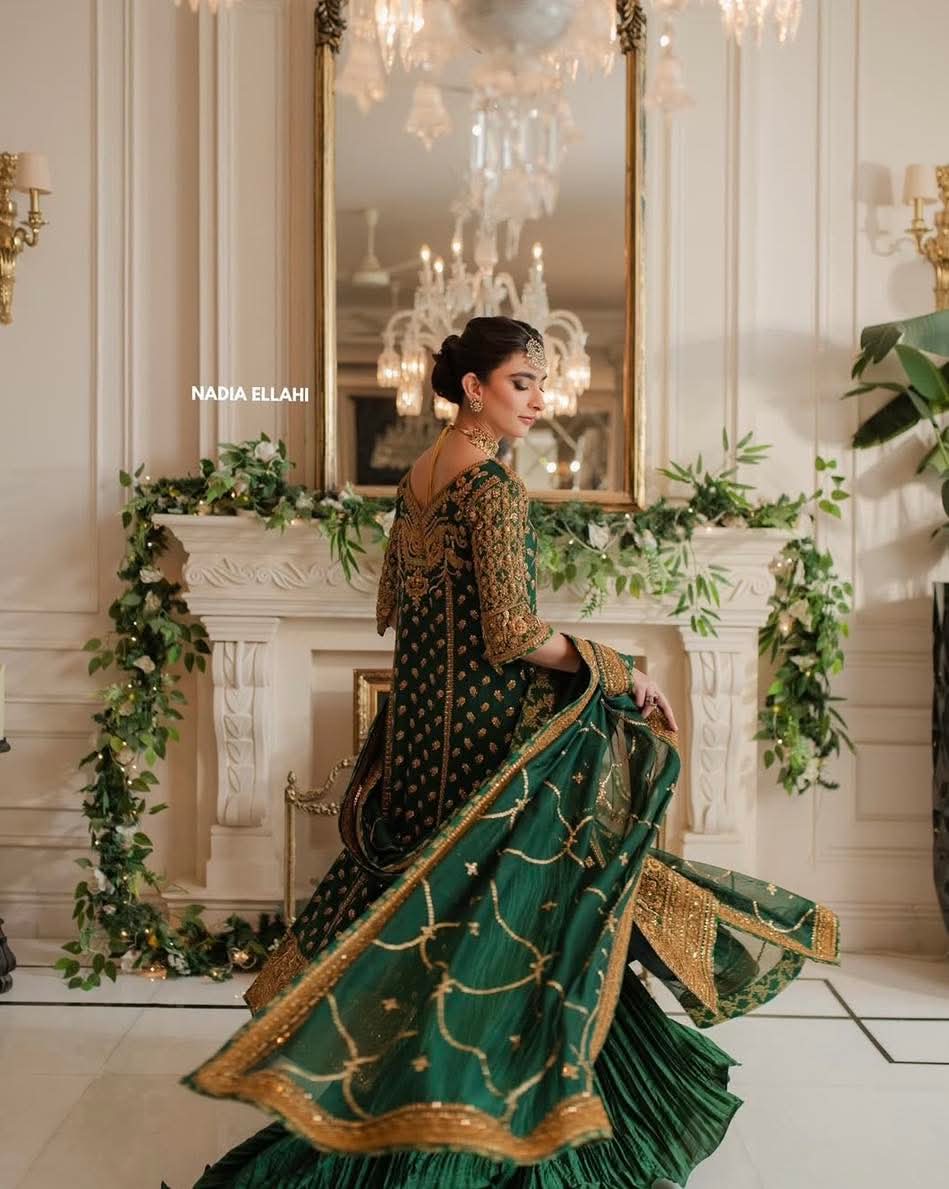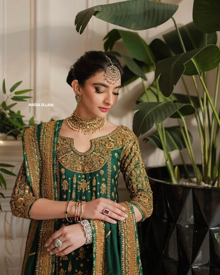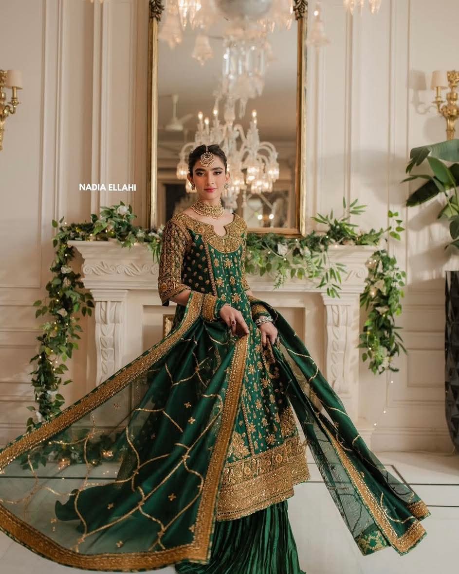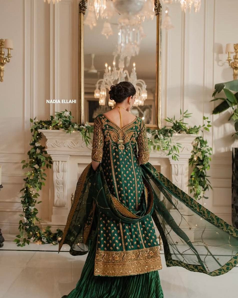 Mehrunissa by Nadia Ellahi” is an opulent ensemble that embodies regal charm and timeless sophistication. Designed with meticulous attention to detail, it features exquisite hand embroidery, intricate embellishments, and luxurious fabrics that drape gracefully. The ensemble’s rich color palette and delicate craftsmanship reflect a perfect fusion of tradition and modern elegance, making it an ideal choice for those who seek refinement and grandeur.